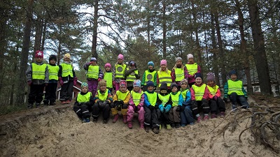 kokonaisen lapsiryhmän yhdessä viisivuotiaiden kanssa.